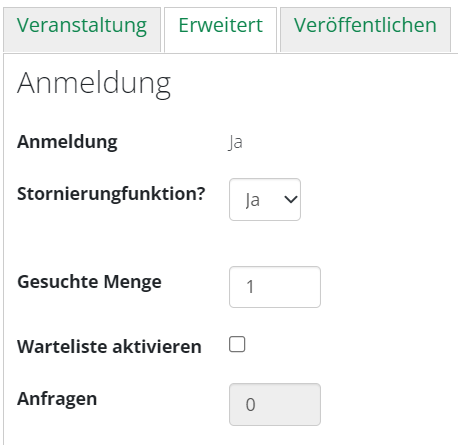 Definiere, ob Anfragen storniert werden können oder ob du eine Warteliste haben möchtest, in dem potentielle Gegner auf deine Klärung warten möchten, falls ein geplanter Gegner ausfällt.